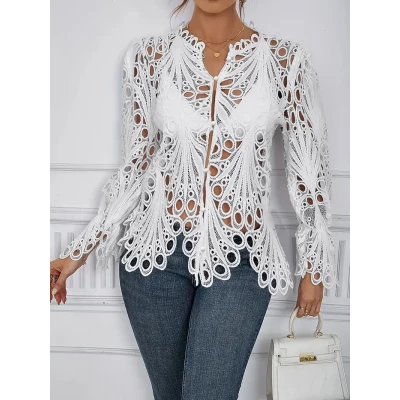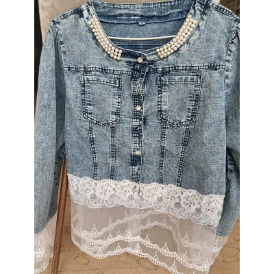 2025 Spring/Summer collection of women's denim and lace jackets, embellished with pearl decorations - long sleeve single-breasted plus size coat, machine washable