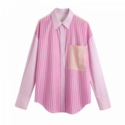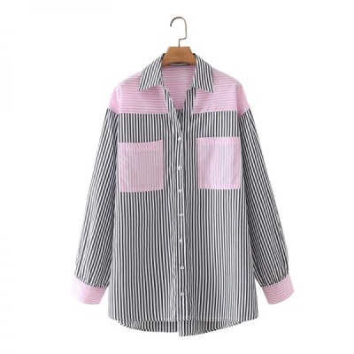 Hot Sale Women Contrast Color Splicing Striped Oversized Shirt Female Long Sleeve Blouse Casual Lady Loose Tops Blusas S9165